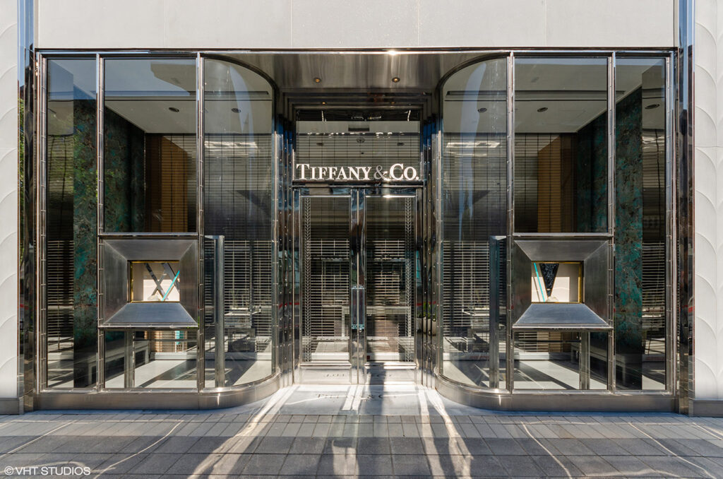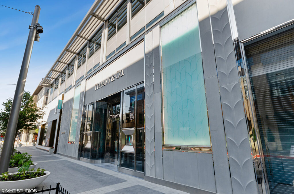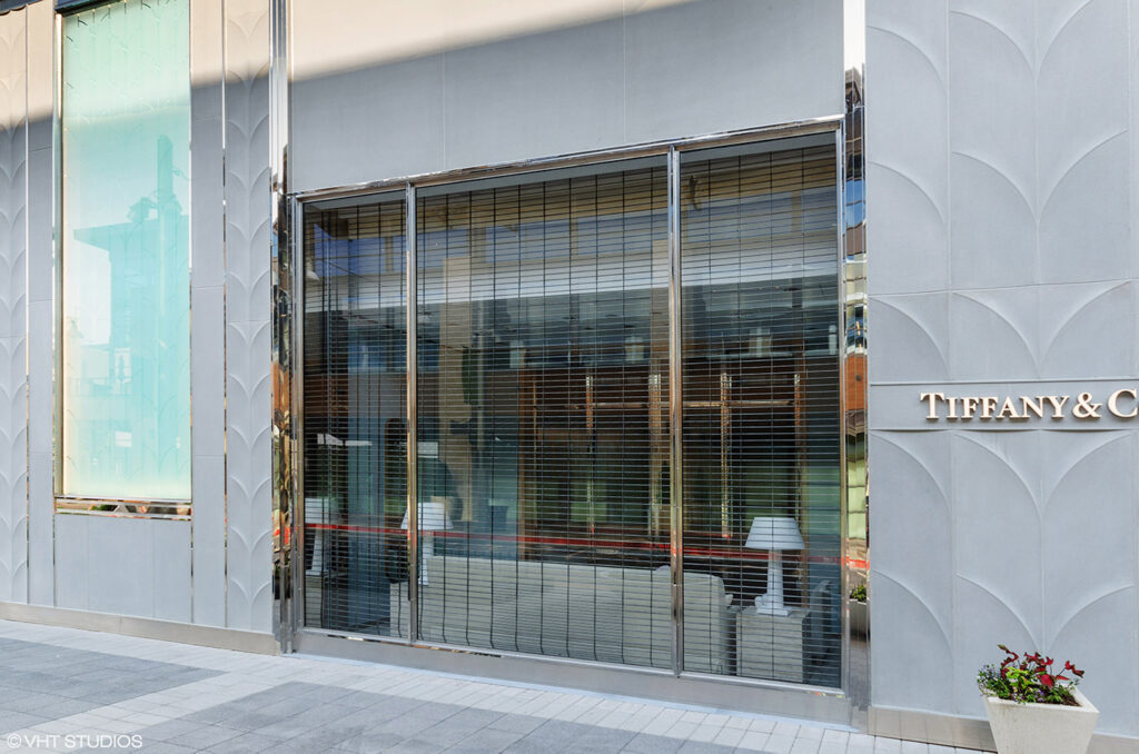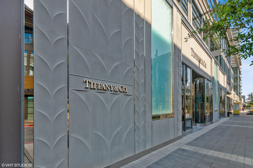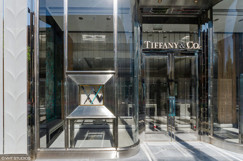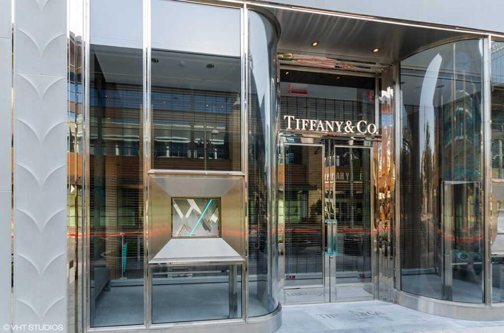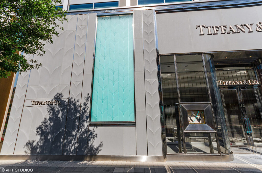 SCOPE: Our recently completed flagship location for Tiffany & Co. was located at the Legacy West Shopping Center in Plano, TX. We provided custom fabricated stainless steel security window frames, display vitrines, and entry doors, laminated low iron security glass, etched blue “wheat leaf” glass panels over 15’ tall, curved vestibule security glass, and all brushed and polished stainless steel framing and trims.